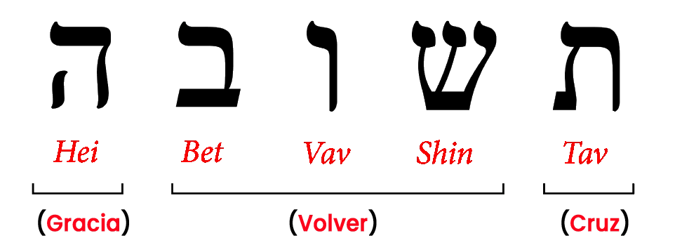 En el rico idioma hebreo, la palabra para arrepentimiento es Teshuvá (תשובה). Al analizar sus componentes, descubrimos una revelación asombrosa sobre la esencia del plan redentor de Dios. El hebreo, que se lee de derecha a izquierda, se compone de cinco letras: tav, shin, vav, bet y hei.