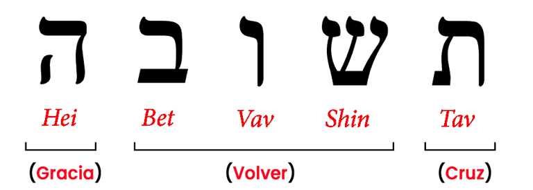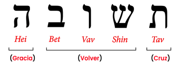 Al unir estos significados, la palabra Teshuvá se descifra como una invitación divina: "¡Por la cruz de Jesús, regresa a la gracia!"